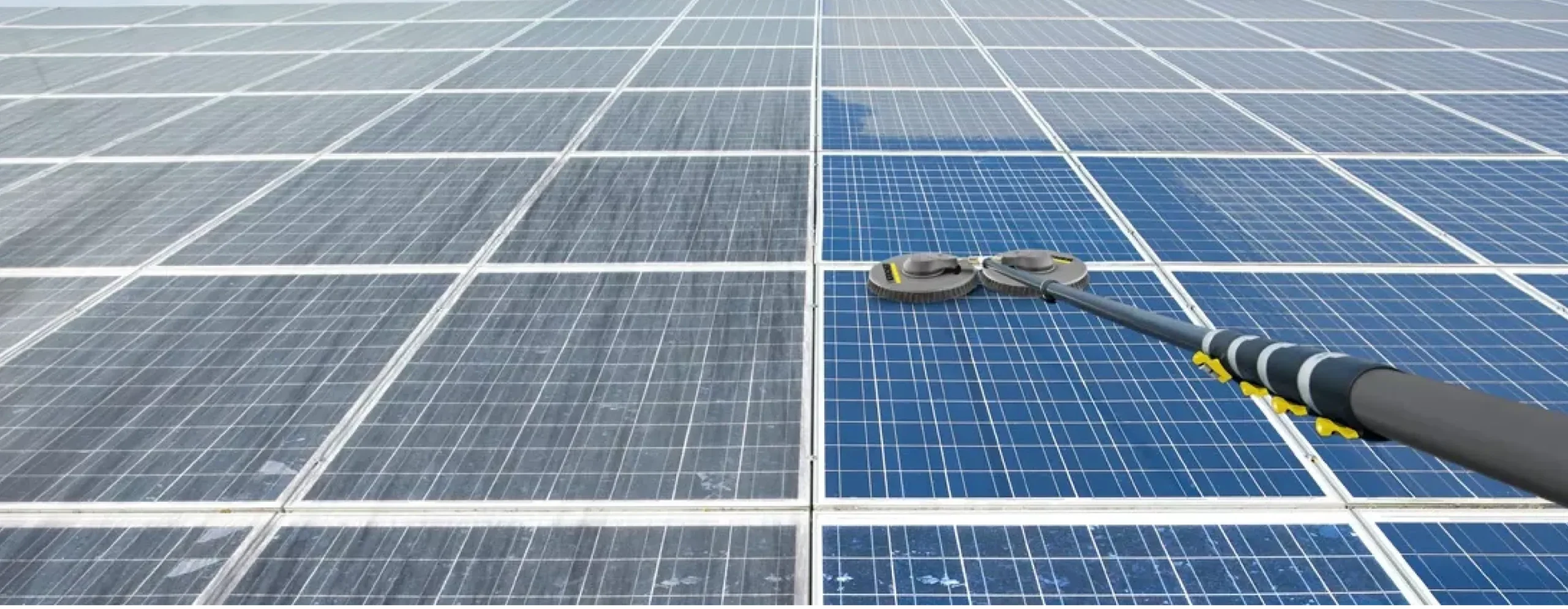 Szczotki napędzane wodą pod niskim ciśnieniem z urządzenia wysokociśnieniowego, skutecznie usuwają nawet mocno przylegające zabrudzenia, nie ryzykując przy tym zarysowania delikatnej powierzchni paneli.